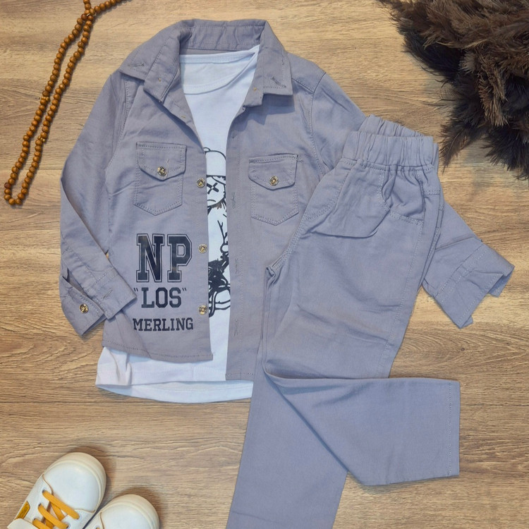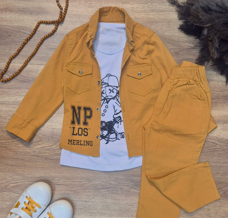 ست سه تیکه کتان مناسب دو الی هفت سال