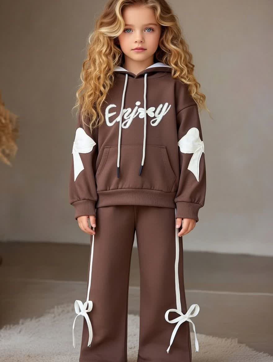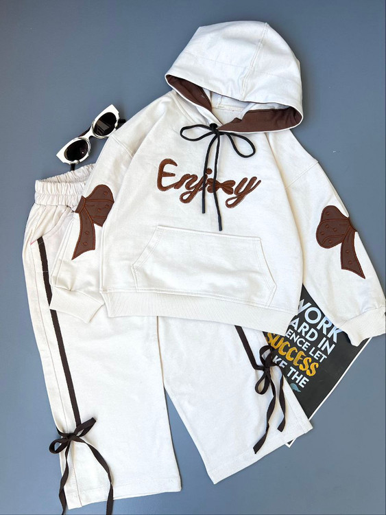 ست هودی و شلوار بگ دخترونه طرح پاپیون