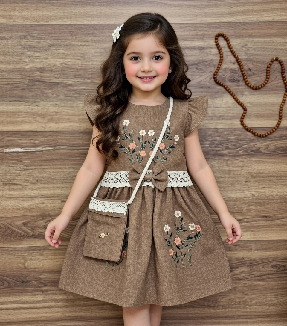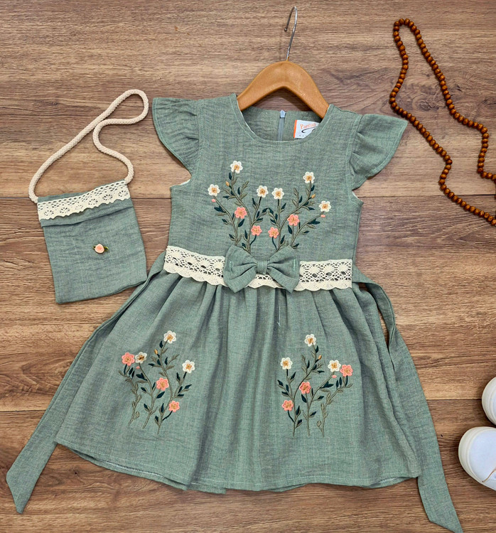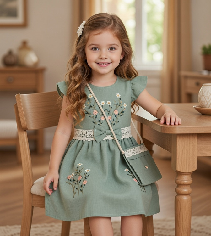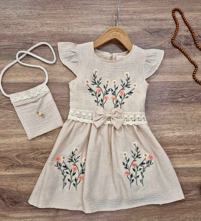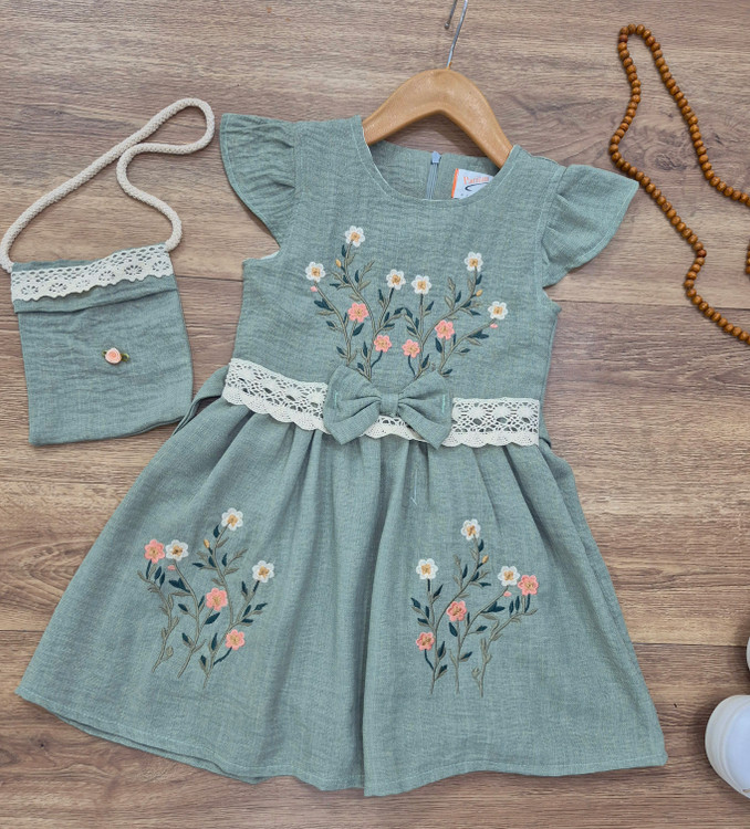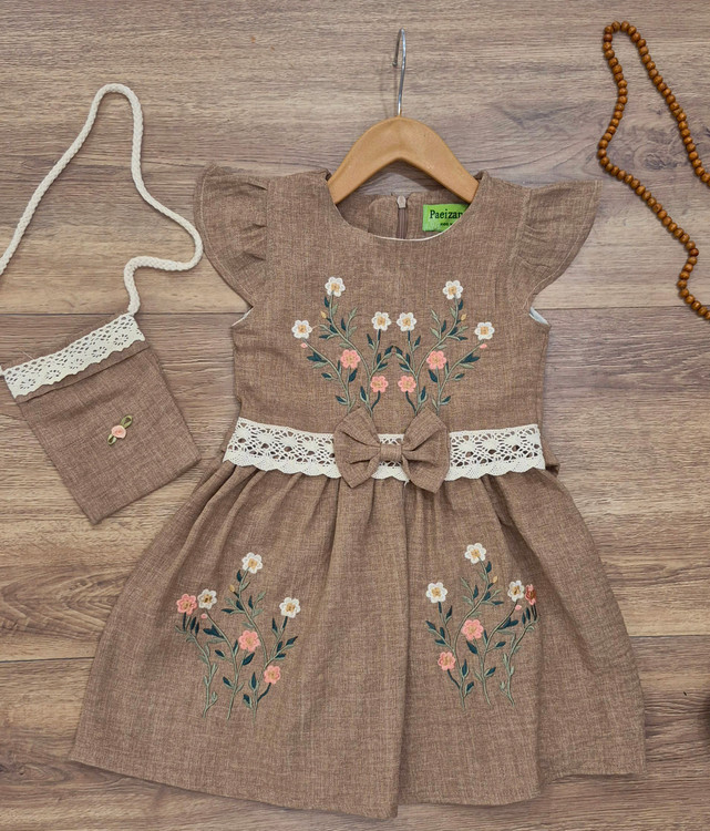 سارافون دخترانه مدل گلدوزی به همراه کیف