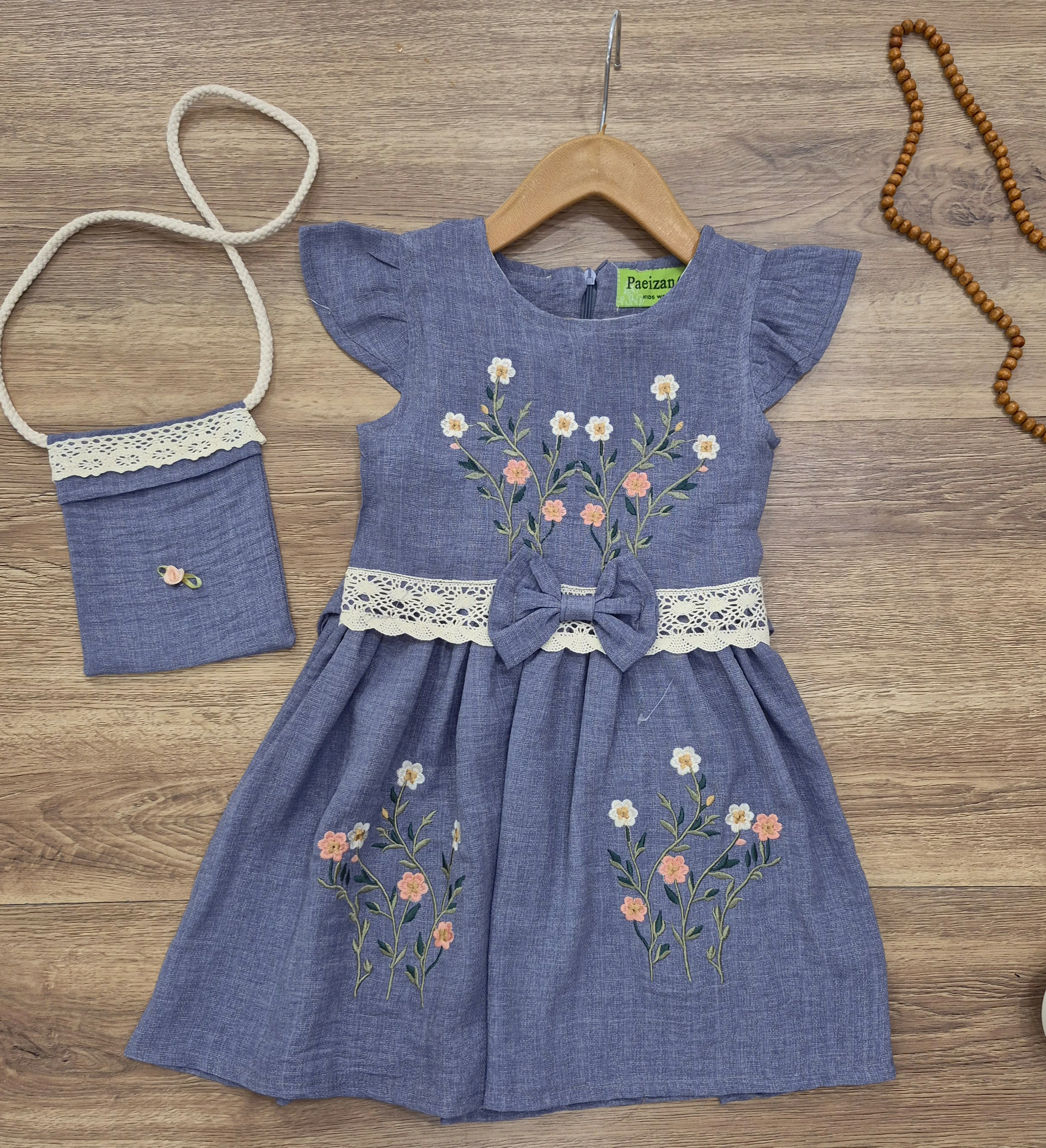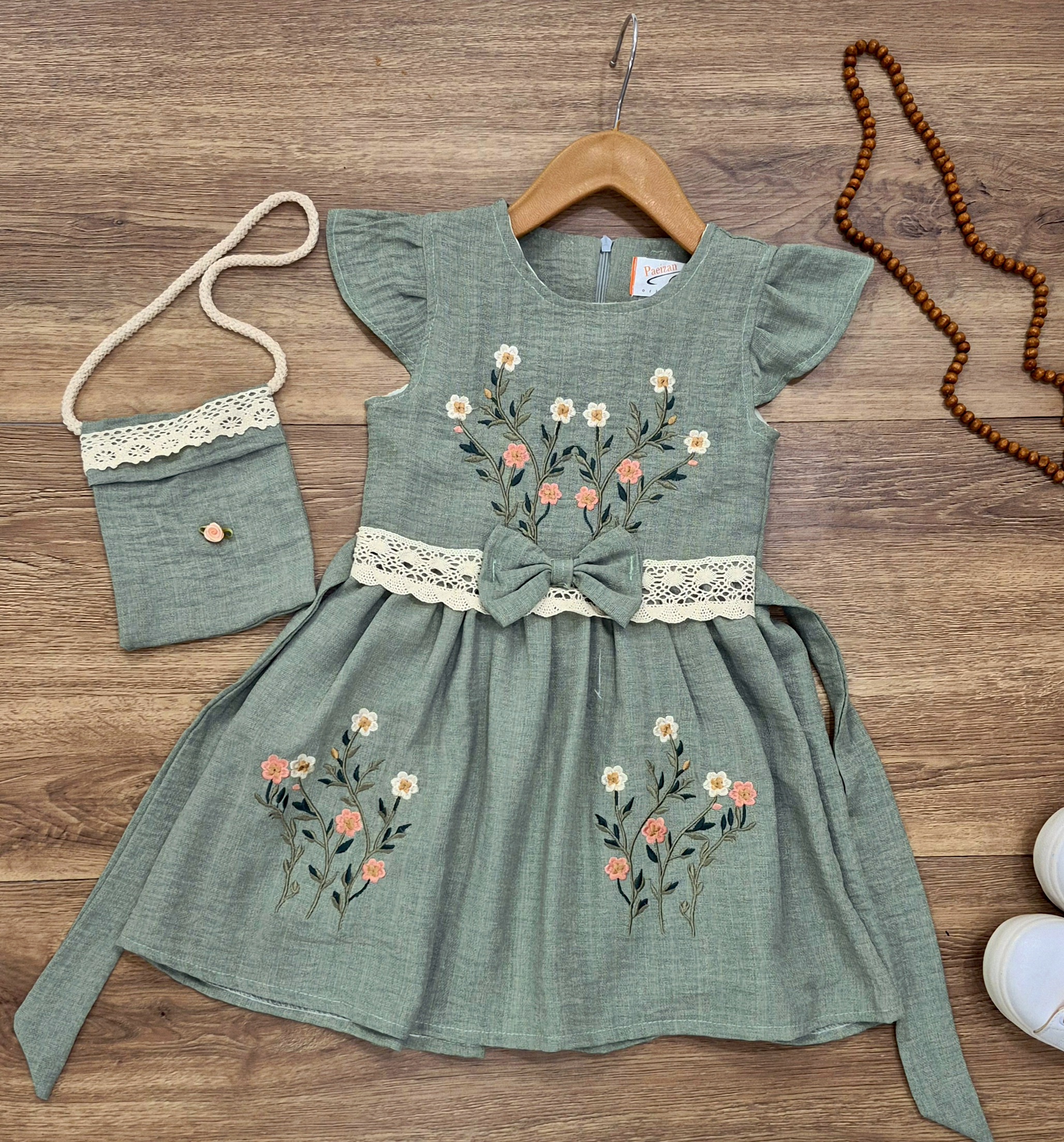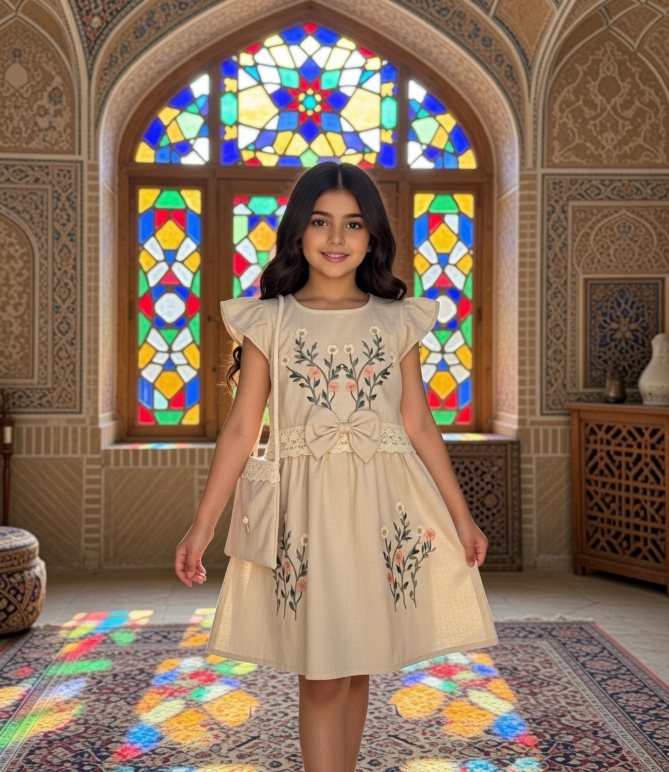 سارافون دخترانه مدل گلدوزی به همراه کیف