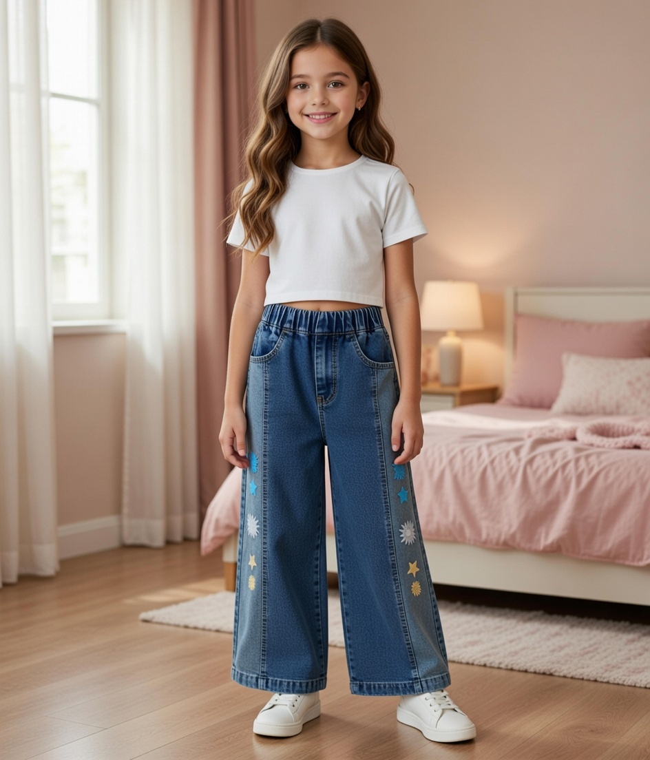 شلوار شافل بگ دخترانه گلدوزی ۶۵ تا ۱۰۰